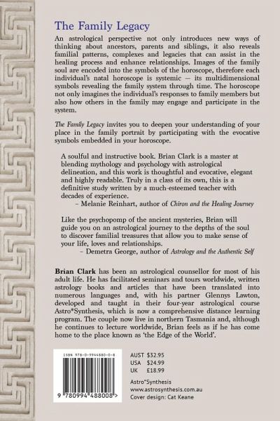 An astrological perspective not only introduces new ways of thinking about ancestors, parents and siblings, it also reveals familial patterns, complexes and legacies that can assist in the healing process and improve future relationships. Images of the soul of a family are encoded into the symbols of the horoscope, therefore each individual's natal horoscope is systemic - its multidimensional symbols revealing the family system through time. The horoscope not only imagines the individual's responses to family members but also how others in the family may engage and participate in the system. The Family Legacy invites you to deepen your understanding of your place in the family portrait by participating with the evocative symbols embedded in your horoscope.