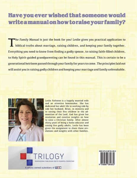 Have you ever wished that someone would write a manual on how to raise your family? The Family Manual is just the book for you! Leslie gives you practical application to biblical truths about marriage, raising children, and keeping your family together. Everything you need to know from finding a godly spouse, to raising faith-filled children, to Holy Spirit-guided grandparenting can be found in this manual. This is certain to be a generational heirloom passed through your family for years to come. The principles laid out will assist you in raising godly children and keeping your marriage and family unbreakable.