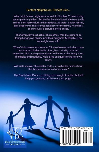 Perfect Neighbours, Perfect Lies... When Viola's new neighbours move into Number 33, everything seems picture-perfect. But behind the manicured lawn and polite smiles, dark secrets lurk in the shadows. As Viola, a quiet retiree, digs deeper into the strange behaviour of the family next door, she uncovers a disturbing web of lies. The father, Rhys, is hostile. The mother, Wendy, seems to be losing her grip on reality. And their daughter, Mirabelle, is an eerie eight-year-old. When Viola sneaks into Number 33, she discovers a locked room and a secret hidden inside. Soon, her curiosity turns into obsession. But as she pushes closer to the truth, the family turns the tables and suddenly, Viola is the one questioning her own sanity. Will Viola uncover the sinister truth... or is she the next victim in this twisted game of cat and mouse? The Family Next Door is a chilling psychological thriller that will keep you guessing until the very last page.