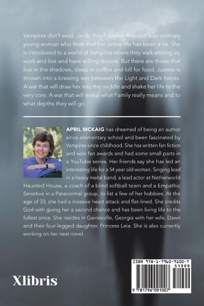 Vampires don't exist...or do they? Justine Reynard is an ordinary young woman who finds that her entire life has been a lie. She is introduced to a world of Vampires where they walk among us, work and live and have willing donors. But there are those that live in the shadows, sleep in coffins and kill for food. Justine is thrown into a brewing war between the Light and Dark forces. A war that will draw her into the middle and shake her life to the very core. A war that will reveal what Family really means and to what depths they will go.