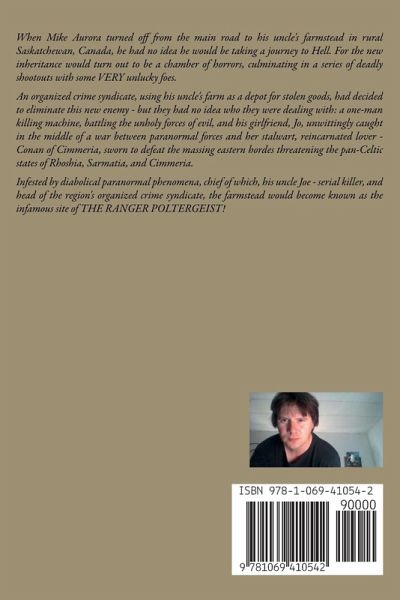 When Mike Aurora turned off from the main road to his uncle's farmstead, in rural Saskatchewan, Canada, he had no idea he would be taking a journey to Hell. For the new inheritance would turn out to be a chamber of horrors, culminating in a series of deadly shootouts with some VERY unlucky foes. An organized crime syndicate, using his uncle's farm as a depot for stolen goods, had decided to eliminate this new enemy - but they had no idea who they were dealing with: a one-man killing machine, battling the unholy forces of evil, and his girlfriend, Jo, unwittingly caught in the middle of a war between paranormal forces and her stalwart, reincarnated lover - Conan of Cimmeria, sworn to defeat the massing eastern hordes threatening the pan-Celtic states of Rhoshia, Sarmatia, and Cimmeria. Infested by diabolical paranormal phenomena, chief of which, his uncle Joe - serial killer, and former head of the region's organized crime syndicate, the farmstead would become known as the infamous site of THE RANGER POLTERGEIST!