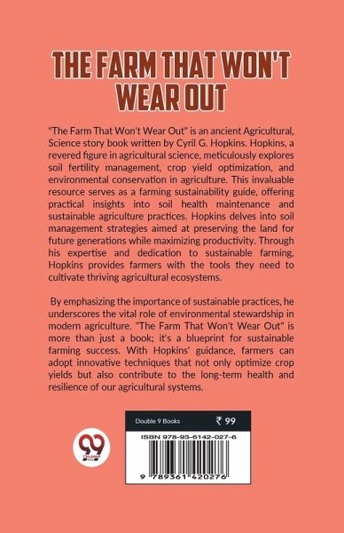 "The Farm That Won't Wear Out" is an ancient Agricultural, Science story book written by Cyril G. Hopkins. Hopkins, a revered figure in agricultural science, meticulously explores soil fertility management, crop yield optimization, and environmental conservation in agriculture. This invaluable resource serves as a farming sustainability guide, offering practical insights into soil health maintenance and sustainable agriculture practices. Hopkins delves into soil management strategies aimed at preserving the land for future generations while maximizing productivity. Through his expertise and dedication to sustainable farming, Hopkins provides farmers with the tools they need to cultivate thriving agricultural ecosystems. By emphasizing the importance of sustainable practices, he underscores the vital role of environmental stewardship in modern agriculture. "The Farm That Won't Wear Out" is more than just a book; it's a blueprint for sustainable farming success. With Hopkins' guidance, farmers can adopt innovative techniques that not only optimize crop yields but also contribute to the long-term health and resilience of our agricultural systems.