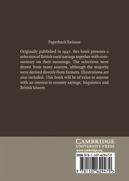 Originally published in 1947, this book presents a selection of British rural sayings together with commentary on their meanings. The selections were drawn from many sources, although the majority were derived directly from farmers. Illustrations are also included. This book will be of value to anyone with an interest in country sayings, linguistics and British history.