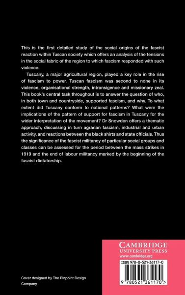 This 1989 book is a detailed study of the social origins of the fascist reaction in Tuscany, which played a key role in the rise of Italian fascism to power. Tuscan fascism was second to none in its violence, organisational strength, intransigence and missionary zeal. The central question is who supported fascism, and why. To what extent did Tuscany, a major agricultural region, conform to national patterns? What are the implications of the pattern of support for fascism in Tuscany for the wider interpretation of the movement? Dr Snowden offers a thematic approach, discussing in turn agrarian fascism, industrial and urban activity, and relations between the black-shirts and state officials. Thus the significance of the fascist militancy of particular social groups and classes can be assessed for the period between the mass strikes in 1919 and the end of labour militancy marked by the beginning of the fascist dictatorship.