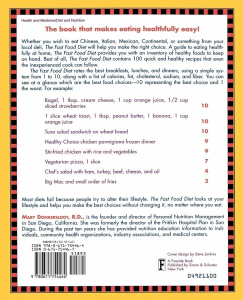This simple, informative guide to nutritionally sound, fast, no-fuss meals is what every busy family needs. Covering both make-at-home meals and restaurant fare, it shows that fast food can be healthy food. Includes information about foods from national franchise restaurants as well as recipes for fast home cooking and a weight-loss program.