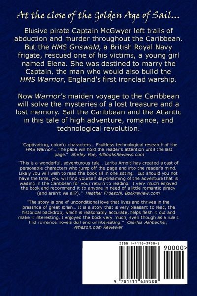 The year is 1860, at the end of the Golden Age of Sail. A pirate abducts the daughter of the Govenor of Jamaica. She is rescued by the man she is destined to marry, a man who will also build England's first iron-clad warship, the HMS Warrior. Now Warrior's maiden voyage will solve the mysteries of a lost treasure and a lost memory. Sail the Caribbean and the Atlantic in this tale of high adventure, romance, and technological revolution.