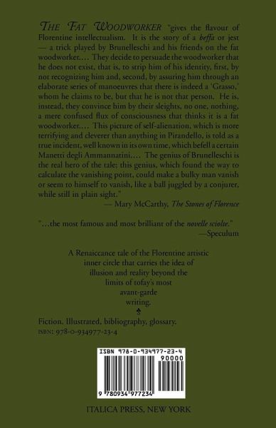"The Fat Woodworker" is a delightful story in the tradition of the Italian Renaissance "beffe," stories of practical, often cruel jokes. It is the tale of a prank engineered by the great Renaissance architect, Filippo Brunelleschi (1377-1446), played upon an unsuspecting (and perhaps less-than-brilliant) friend and woodworker named Manetto, in reprisal for the woodworker's social slight. While the prank is indeed cruel, it is so ingenious, and the victim is so comical, that the reader soon forgets the architect's - and the author's - malice and settles in for a delightful turn as part of the…mehr