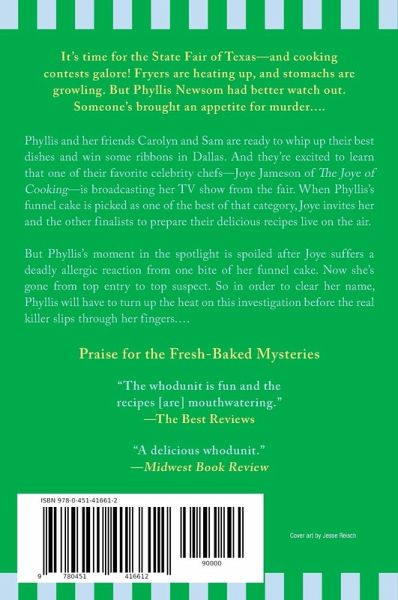It's time for the State Fair of Texas—and cooking contests galore! Fryers are heating up and stomachs are growling. But Phyllis Newsom had better watch out. Someone's brought an appetite for murder.... Phyllis and her friends Carolyn and Sam are ready to whip up their best dishes and win some ribbons in Dallas. And they're excited to learn that one of their favorite celebrity chefs—Joye Jameson of The Joye of Cooking—is broadcasting her TV show from the fair. When Phyllis's funnel cake is picked as one of the best of that category, Joye invites her and the other finalists to prepare their delicious recipes live on the air. But Phyllis's moment in the spotlight is spoiled after Joye suffers a deadly allergic reaction from one bite of her funnel cake. Now she's gone from top entry to top suspect. So in order to clear her name, Phyllis will have to turn up the heat on this investigation before the real killer slips through her fingers.... INCLUDES RECIPES!