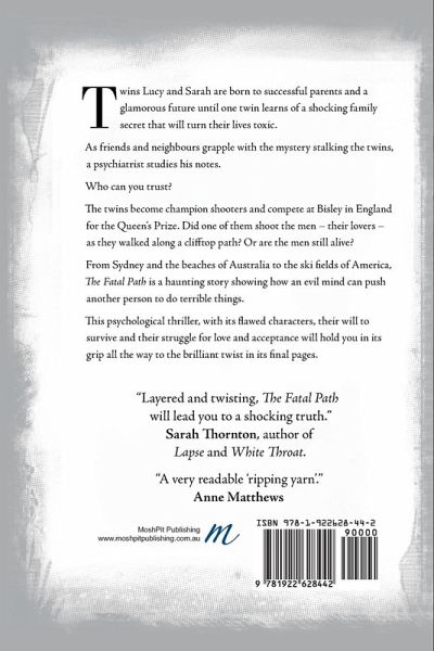 **Winner 2022 Global Ebook Awards**Gold in Suspense Fiction for The Fatal PathGold in Thriller Fiction for The Fatal Path A twin girl learns a terrible family secret that will cause the demons lurking within her young mind to rise up and threaten her close-knit family. As a toxic element seeps into their lives they all, in their own way, struggle with feelings of distrust and helplessness. The Fatal Path is a tense Australian drama set against the magnificence of Sydney Harbour, the ski fields of America and the famous Bisley shooting centre in England. The twins are born to wealth and idyllic…mehr