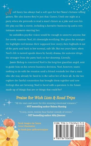 Noel Kasey has always had a soft spot for her Nana's fortune-telling games. She also knows they're just that. Games. Until one night at a party when she pretends to read a man's future as a joke and sees his life play out like a movie, including a lucrative business tip and a very intimate moment-starring her. An unbidden psychic vision would be enough to unnerve anyone, but for overly cautious Noel, it's downright terrifying. She gives the stranger the highlight reel (minus their supposed love story), then hightails it out of the party and back to her normal, safe life. But two years later, when Noel is set adrift by family drama, the universe drops the stranger from the party back on her doorstep. Literally. Jamie Bishop is convinced Noel is his long-lost guardian angel sent to guide him on his newest business decision. Noel, however, wants nothing to do with the reunion until a friend reminds her that a man who she may already be fated to is the safest bet of them all. As the two explore the fateful connection that brought them together and new feelings that are brewing, Noel is faced with a question: Is the future made up of things that are or things that could be?