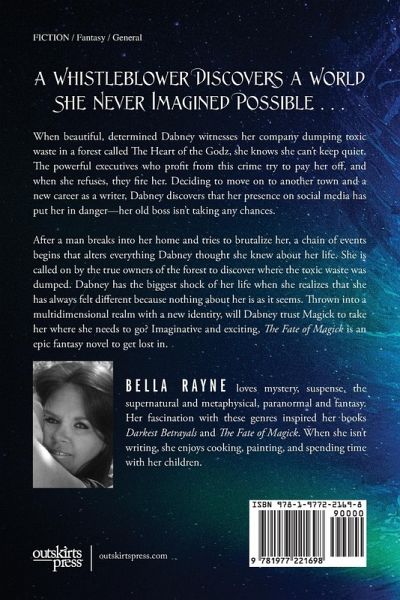 Dabney discovers her company is dumping toxic waste in her favorite forest. When she reports this atrocity to her boss, he fires her-sending Dabney on a bizarre and dangerous journey through the Heart of the Godz forest and the Magick contained within. Will she be open to accept and receive what Magick has to offer her? Bella Rayne's The Fate of Magick is perfect for readers of fantasy and suspense. When creativity and imagination bring forth a story, there is no ignoring what wants to come forward. Like Dabney and Bella, will you be ready for Magick to show up in your world?