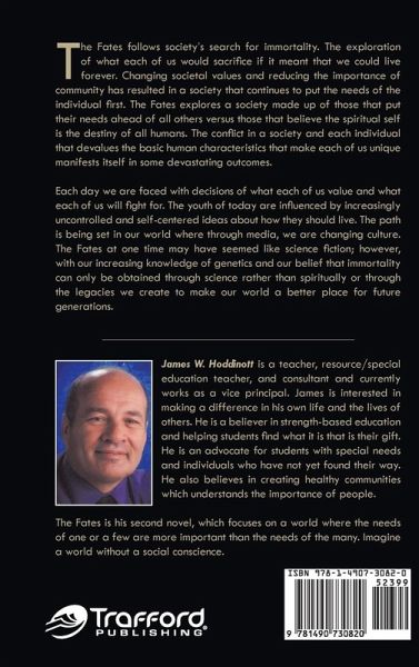 The Fates follows society's search for immortality. The exploration of what each of us would sacrifice if it meant that we could live forever. Changing societal values and reducing the importance of community has resulted in a society that continues to put the needs of the individual first. The Fates explores a society made up of those that put their needs ahead of all others versus those that believe the spiritual self is the destiny of all humans. The conflict in a society and each individual that devalues the basic human characteristics that make each of us unique manifests itself in some devastating outcomes. Each day we are faced with decisions of what each of us value and what each of us will fight for. The youth of today are influenced by increasingly uncontrolled and self-centered ideas about how they should live. The path is being set in our world where through media, we are changing culture. The Fates at one time may have seemed like science fiction; however, with our increasing knowledge of genetics and our belief that immortality can only be obtained through science rather than spiritually or through the legacies we create to make our world a better place for future generations.