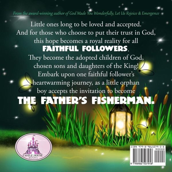 A Winner of The 2024 Christlit Book Award, this sweet story celebrates the specialness of God's children and encourages little ones to become fishers of men and faithful followers of the King of kings. Mistie House has produced an outstanding creation that would be a valuable addition to any literary collection. As families come together to read this wonderful story, it is bound to become a cherished favorite, serving as a reminder of the assuredness and freedom found in embracing faith and recognizing God as our loving Father. (5-star rating) - Louise Jane, CEO The Christlit Book Awards The Father's Fisherman is a captivating book that delivers powerful messages of God's love, light, hope, perseverance, and the idea that everyone has a specific purpose. It imparts valuable life lessons that can inspire children to follow the path of the King of Kings and embrace these timeless teachings of the Bible. (5-star rating) - Book Review by KidlioMag, A Kids Literary Magazine "So the prince set out on a voyage to share the message of the King's goodness with all he found. He explained, "Once I was a lost and lonely orphan. But I was chosen and adopted into a forever family. Now, I'm royalty! I was given a new identity and a new name all thanks to my loving Father." Every believer who accepts Christ is chosen and adopted into God's family. Help your children celebrate this royal reality as you share this charming tale about a boy who discovers his true identity and unique purpose. Featuring beautiful illustrations and hidden Bible verses from award-winning author Mistie House, The Father's Fisherman is the perfect gift for any occasion. (Christian identity book kids, God loves me books for kids, Christian picture book boys, empowering books for little boys, prince children's book, dad and son books for kids)