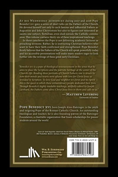 At his Wednesday audiences during 2007 and 2008 Pope Benedict XVI gave a series of short talks on the Fathers of the Church. He devoted himself not only to such famous and influential Fathers as Augustine and John Chrysostom but also to figures not venerated as saints; one subject, Tertullian, even died outside the Catholic communion. This volume contains thirty-six of these inspirational teachings. In these catecheses the Pope is not delivering academic lectures or preaching sermons. Rather, he is instructing Christian believers who want to have their faith confirmed and strengthened. Pope Benedict firmly believes that the Fathers of the Church still speak powerfully today, and his accessible presentations will make many readers eager to look further into the writings of these great early Christians.