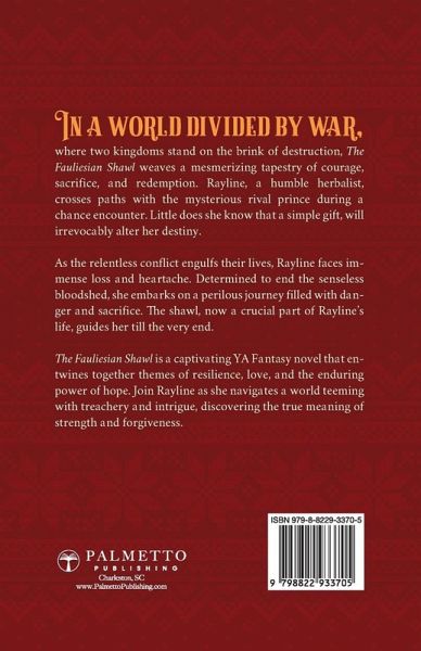 Uncover the Power of the Fauliesian Shawl in this Epic Tale of War, Vengeance, and Redemption In the realm of Fauliese and Cayllan, where the clash of swords and the chant of war cries echo through the land, The Fauliesian Shawl weaves a tale of bravery and redemption tailored for the discerning teenage reader. Dive into an epic adventure where courage meets betrayal, and the strength of character trumps all. Meet Rayline, a humble Cayllian herbalist, whose life takes an extraordinary turn when she receives a seemingly ordinary shawl from the Prince of Fauliese. Little does she know that this gift will catapult her into a world of turmoil, where her choices hold the fate of two kingdoms. As war ravages the land, Rayline continues to turn to the shawl for courage, peace, comfort, and hope. The Fauliesian Shawl is a story where the strength of the heart is greater than the blade of the sword. It stands as a testament to the values of courage, honor, and resilience. Amidst the chaos of warring kingdoms, what many would consider a worthless object helps to illuminate the path toward virtue and redemption. In a world craving authentic narratives, The Fauliesian Shawl offers a feast of virtues. It celebrates the boundless nature of friendship, transcending the barriers of kingdom and distance. It presents a tale of bravery that inspires even the faintest of hearts to stand tall in the face of darkness. Most importantly, it serves as a testament to the resilience of the human spirit, proving that no matter how dire the circumstances, honor and kindness will always prevail. Join us in this exciting odyssey, where the echoes of swords are drowned out by the echoes of compassion and where the power of the Fauliesian Shawl stands tall in the face of evil.