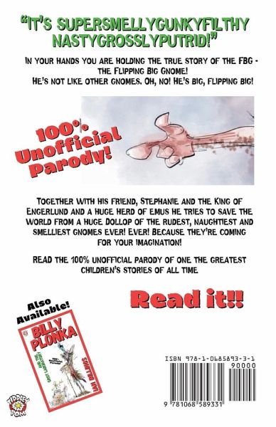 "It's supersmellygunkyfilthynastygrosslyputrid!" In your hands you are holding the true story of the FBG - the Flipping Big Gnome! He's not like other gnomes. Oh, no! He's big, flipping big! Together with his friend, Stephanie and the King of Engerlund and a huge herd of emus he tries to save the world from a huge Dollop of the rudest, naughtiest and smelliest gnomes ever! Ever! Because they're coming for your imagination!