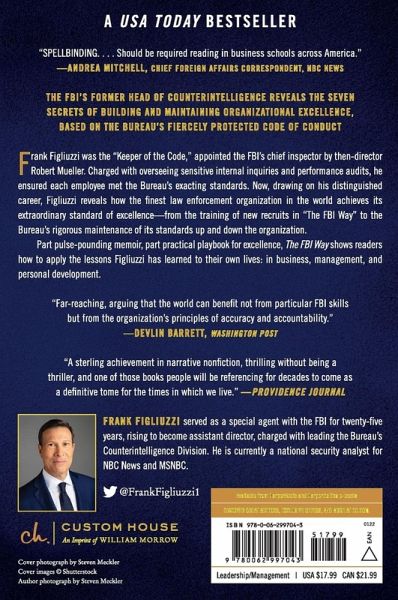 NATIONAL BESTSELLER The FBI's former head of counterintelligence reveals the seven secrets of building and maintaining organizational excellence "A must read for serious leaders at every level." ?General Barry R. McCaffrey (Ret.) Frank Figliuzzi was the "Keeper of the Code," appointed the FBI's Chief Inspector by then-Director Robert Mueller. Charged with overseeing sensitive internal inquiries and performance audits, he ensured each employee met the Bureau's exacting standards. Now, drawing on his distinguished career, Figliuzzi reveals how the Bureau achieves its extraordinary track record of excellence?from the training of new recruits in "The FBI Way" to the Bureau's rigorous maintenance of its standards up and down the organization. All good codes of conduct have one common trait: they reflect the core values of an organization. Individuals, companies, schools, teams, or any group seeking to codify their rules to live by must first establish core values. Figliuzzi has condensed the Bureau's process of preserving and protecting its values into what he calls ?The Seven C's?. If you can adapt the concepts of Code, Conservancy, Clarity, Consequences, Compassion, Credibility, and Consistency, you can instill and preserve your values against all threats, internal and external. This is how the FBI does it. Figliuzzi's role in the FBI gave him a unique opportunity to study patterns of conduct among high-achieving, ethical individuals and draw conclusions about why, when and how good people sometimes do bad things. Unafraid to identify FBI execs who erred, he cites them as the exceptions that prove the rule. Part pulse-pounding memoir, part practical playbook for excellence, The FBI Way shows readers how to apply the lessons he's learned to their own lives: in business, management, and personal development.