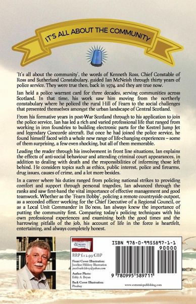 'It's all about the community', the words of Kenneth Ross, Chief Constable of Ross and Sutherland Constabulary, guided Ian McNeish through thirty years of police service. They were true then, back in 1974, and they are true now. Ian held a police warrant card for three decades, serving communities across Scotland. In that time, his work saw him moving from the northerly constabulary where he policed the rural Hill of Fearn to the social challenges that presented themselves amongst the urban landscape of Central Scotland. From his formative years in post-War Scotland through to his application to join the police service, Ian has led a rich and varied professional life that ranged from working in iron foundries to building electronic parts for the Kestrel Jump Jet and legendary Concorde aircraft. But once he had joined the police service, he found himself faced with a whole new range of life-changing experiences - some of them surprising, a few even shocking, but all of them memorable. Leading the reader through his involvement in front line situations, Ian explains the effects of anti-social behaviour and attending criminal court appearances, in addition to dealing with death and the responsibilities of informing those left behind. He considers topics such as ethics, public interest, police and firearms, drug issues, causes of crime, and a lot more besides. In a career where his duties ranged from policing national strikes to providing comfort and support through personal tragedies, Ian advanced through the ranks and saw first-hand the vital importance of effective management and good teamwork. Whether as the 'Fearn Bobby', policing a remote countryside outpost, as a seconded officer working for the Chief Executive of a Regional Council, or as a Local Unit Commander in Bo'ness, Ian always recognised the importance of putting the community first. Comparing today's policing techniques with his own professional experiences and examining both the good times and the harrowing pitfalls of the job, his account of life in the force is heartfelt, entertaining, and always completely honest.