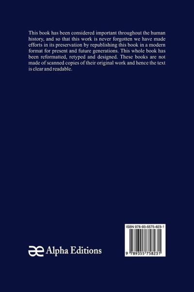 This book has been considered important throughout the human history, and so that this work is never forgotten we have made efforts in its preservation by republishing this book in a modern format for present and future generations. This whole book has been reformatted, retyped and designed. These books are not made of scanned copies and hence the text is clear and readable.