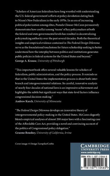 The level of government responsible for implementing policies affects intent, services provided, and ultimate outcomes. The decision about where to locate such responsibility is the federal design dilemma faced by Congress. Taking a new approach to this delegation and decentralization, The Federal Design Dilemma focuses on individual members of Congress. Not only are these legislators elected by constituents from their states, they also consider the outcomes that will result from state-level versus national executive branch implementation of policies. Here, Pamela J. Clouser McCann documents congressional intergovernmental delegation between 1973 and 2010, and how individual legislators voted on decentralization and centralization choices. Clouser McCann traces the path of the Affordable Care Act from legislative proposals in each chamber to its final enactment, focusing on how legislators wrestled with their own intergovernmental context and the federal design of health insurance reform in the face of political challenges.