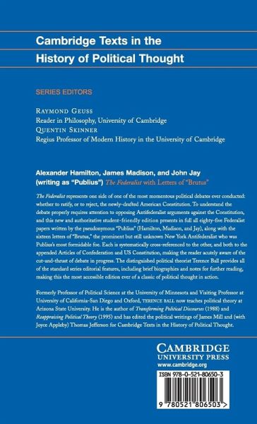The most accessible rendition ever of a classic of political thought in action. Terence Ball presents all eighty-five Federalist papers, along with the sixteen letters of 'Brutus', the New York Antifederalist. Each is systematically cross-referenced to the other, and both to the appended Articles of Confederation and US Constitution.