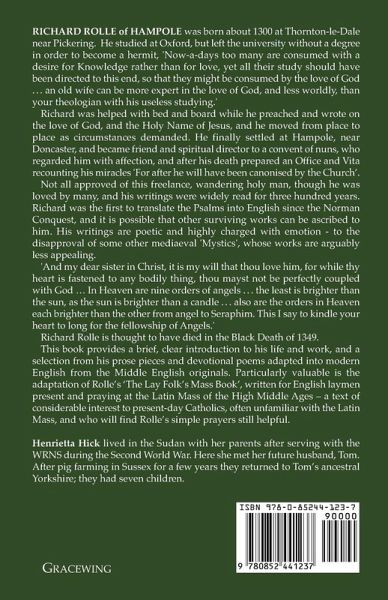 RICHARD ROLLE of HAMPOLE was born about 1300 at Thornton-le-Dale near Pickering. He studied at Oxford, but left the university without a degree in order to become a hermit, 'Now-a-days too many are consumed with a desire for Knowledge rather than for love, yet all their study should have been directed to this end, so that they might be consumed by the love of God . . . an old wife can be more expert in the love of God, and less worldly, than your theologian with his useless studying.' Richard was helped with bed and board while he preached and wrote on the love of God, and the Holy Name of Jesus, and he moved from place to place as circumstances demanded. He finally settled at Hampole, near Doncaster, and became friend and spiritual director to a convent of nuns, who regarded him with affection, and after his death prepared an Office and Vita recounting his miracles 'For after he will have been canonised by the Church'. Not all approved of this freelance, wandering holy man, though he was loved by many, and his writings were widely read for three hundred years. Richard was the first to translate the Psalms into English since the Norman Conquest, and it is possible that other surviving works can be ascribed to him. His writings are poetic and highly charged with emotion - to the disapproval of some other mediaeval 'Mystics', whose works are arguably less appealing. 'And my dear sister in Christ, it is my will that thou love him, for while thy heart is fastened to any bodily thing, thou mayst not be perfectly coupled with God . In Heaven are nine orders of angels . . . the least is brighter than the sun, as the sun is brighter than a candle . . . also are the orders in Heaven each brighter than the other from angel to Seraphim. This I say to kindle your heart to long for the fellowship of Angels.' Richard Rolle is thought to have died in the Black Death of 1349. This book provides a brief, clear introduction to his life and work, and a selection from his prose pieces and devotional poems adapted into modern English from the Middle English originals. Particularly valuable is the adaptation of Rolle's 'The Lay Folk's Mass Book', written for English laymen present and praying at the Latin Mass of the High Middle Ages - a text of considerable interest to present-day Catholics, often unfamiliar with the Latin Mass, and who will find Rolle's simple prayers still helpful. Henrietta Hick lived in the Sudan with her parents after serving with the WRNS during the Second World War. Here she met her future husband, Tom. After pig farming in Sussex for a few years they returned to Tom's ancestral Yorkshire; they had seven children.