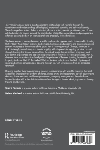 The 'Female' Dancer aims to question dancers' relationships with 'female' through the examination and understandings of biological, anatomical, scientific, and self-social identity. The volume gathers voices of dance scientists, dance scholars, somatic practitioners, and dance artist-educators, to discuss some of the complexities of identities, assumptions and perceptions of a female dancing body in an intersectional and practically focused manner.