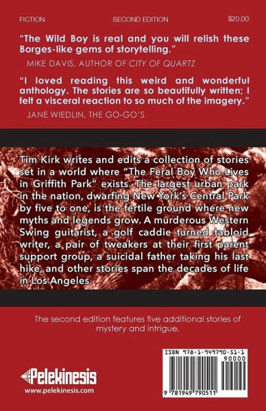Tim Kirk writes and edits a collection of stories set in a world where "The Feral Boy Who Lives in Griffith Park" exists. The largest urban park in the nation, dwarfing New York's Central Park by five to one, is the fertile ground where new myths and legends grow. A murderous Western Swing guitarist, a golf caddie turned tabloid writer, a pair of tweakers at their first parent support group, a suicidal father taking his last hike, and other stories span the decades of life in Los Angeles. Featuring stories by David Carpenter, Patrick Cooper, Rob Zabrecky, Steve Newman, Tim Davis, and Josh Lawson. Second edition also features Hadley Meares, Matt Oswalt, and Annette Zilinskas