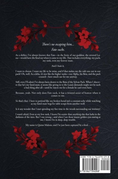 There's no escaping him... Fate sucks. As a shifter, I've always known that Fate-in the form of our goddess, the revered Luna-would have the final say when it came to my life. That includes everything: my pack, my rank, even my forever mate. And I hate it. I want to choose. I want my life to be mine, and if that makes me the odd one out in our pack? Oh, well. As a delta, it's not like the higher ranks-our Alpha, his Beta, and the pack council-have much use for me anyway. Still, even I'll admit I've always been drawn to the Beta of the Sylvan Pack. When I discover that he's my fated mate, it seems like giving in to the Luna's demands might not be such a bad thing after all-until he rejects me for a female he can't even have. Because, yeah. Not only does Fate suck, it has a twisted sense of humor when it comes to me. So that's that. I have to pretend like my broken bond isn't a constant ache while watching as my fated mate begs for table scraps from another wolf. Is it any wonder that I start spending my free time in the woods surrounding our territory? I wasn't afraid. Even at my low rank, I know I'm scarier than anything else that lurks in the darkness of the trees. But I was wrong-and when I see those insane golden eyes staring at me, I know I'm in deep, deep trouble. My name is Quinn Malone, and I've just been captured by a feral...