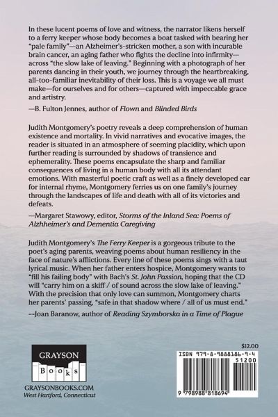 The Ferry Keeper is the winner of the 2024 Grayson Books Chapbook Contest. Judith H. Montgomery cared for her mother and father in their declining years, as well as for her husband in his cancer journey. The Ferry Keeper chronicles her care for her parents on their final journey. These eloquent poems shine with love and resiliency.