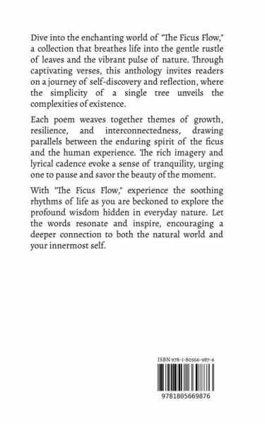 Dive into the enchanting world of "The Ficus Flow," a collection that breathes life into the gentle rustle of leaves and the vibrant pulse of nature. Through captivating verses, this anthology invites readers on a journey of self-discovery and reflection, where the simplicity of a single tree unveils the complexities of existence. Each poem weaves together themes of growth, resilience, and interconnectedness, drawing parallels between the enduring spirit of the ficus and the human experience. The rich imagery and lyrical cadence evoke a sense of tranquility, urging one to pause and savor the beauty of the moment. With "The Ficus Flow," experience the soothing rhythms of life as you are beckoned to explore the profound wisdom hidden in everyday nature. Let the words resonate and inspire, encouraging a deeper connection to both the natural world and your innermost self.
