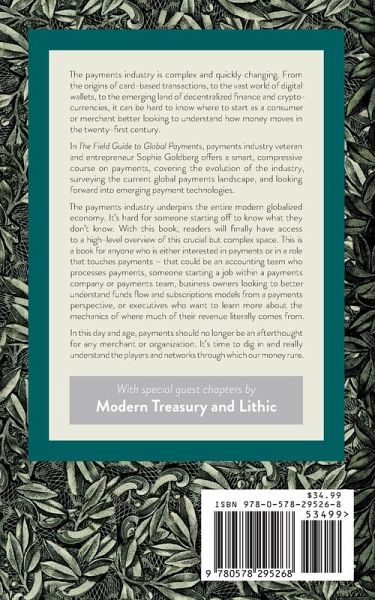 An introduction to the key concepts and payment systems that underpin our global economy. The payments industry is complex and quickly changing. From the origins of card-based transactions, to the vast world of digital wallets, to the emerging land of decentralized finance and cryptocurrencies, it can be hard to know where to start as a consumer or merchant better looking to understand how money moves in the twenty-first century. In The Field Guide to Global Payments, payments industry veteran and entrepreneur Sophia Goldberg offers a smart, compressive course on payments, covering the evolution of the industry, surveying the current global payments landscape, and looking forward into emerging payment technologies. The payments industry underpins the entire modern globalized economy. It's hard for someone starting off to know what they don't know. With this book, readers will finally have access to a high-level overview of this crucial but complex space. This is a book for anyone who is either interested in payments or in a role that touches payments - that could be an accounting team who processes payments, someone starting a job within a payments company or payments team, business owners looking to better understand funds flow and subscriptions models from a payments perspective, or executives who want to learn more about the mechanics of where much of their revenue literally comes from. In this day and age, payments should no longer be an afterthought for any merchant or organization. It's time to dig in and really understand the players and networks through which our money runs.
