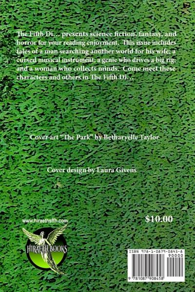 The Fifth Di... presents science fiction, fantasy, and horror for your reading enjoyment. This issue includes tales of a man searching another world for his wife; a cursed musical instrument; a genie who drives a big rig; and a woman who collects minds. Come meet these characters and others in The Fifth Di...