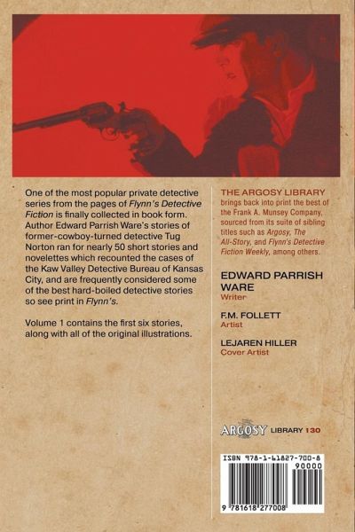 One of the most popular private detective series from the pages of Flynn's Detective Fiction is finally collected in book form. Author Edward Parrish Ware's stories of former-cowboy-turned detective Tug Norton ran for nearly 50 short stories and novelettes which recounted the cases of the Kaw Valley Detective Bureau of Kansas City, and are frequently considered some of the best hard-boiled detective stories so see print in Flynn's. Volume 1 contains the first six stories, along with all of the original illustrations.