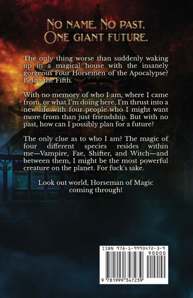 No name. No past. One giant future? The only thing worse than suddenly waking up in a magical house with the insanely gorgeous Four Horsemen of the Apocalypse? Being the Fifth. With no memory of who I am, where I came from, or what I'm doing here, I'm thrust into a new life with four people who I might want more from than just friendship. But with no past, how can I possibly plan for a future? The only clue as to who I am? Four different species' magic resides within me-Vampire, Fae, Shifter, and Witch-and between them, I might be the most powerful creature on the planet. For fuck's sake. Look out world, Horseman of Magic coming through! *** This is a 120,000-word fantasy polyromance book where the main character will not be forced to choose between their love interests. This is also known as a whychoose romance. This book contains lesbian and gay content, mature sexual situations, excess profanity, a character who can shift their sex (both male and female), is gender and sexually fluid, and who spends a lot of time being a snarky, swearing badass.