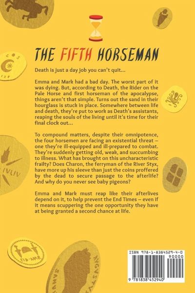 Internationally published bestselling author Jon Smith makes his adult debut with The Fifth Horseman, a modern comic fantasy that rides roughshod over established mythology and the rules of life... and death. The Fifth Horseman is a darkly comic tale of two thirty-somethings caught between our world and the afterlife, who must embrace their role as reapers to prevent the End Times. Death is just a day job you can't quit... Emma and Mark had a bad day. The worst part of it was dying. But, according to Death, the Rider on the Pale Horse and first horseman of the apocalypse, things aren't that simple. Turns out the sand in their hourglass is stuck in place. Somewhere between life and death, they're put to work as Death's assistants, reaping the souls of the living until it's time for their final clock out... To compound matters, despite their omnipotence, the four horsemen are facing an existential threat - one they're ill-equipped and ill-prepared to combat. Does Charon, the ferryman of the River Styx, have more up his sleeve than just the coins proffered by the dead to secure passage to the afterlife? And why do you never see baby pigeons? Emma and Mark must reap like their afterlives depend on it, to help prevent the End Times - even if it means scuppering the one opportunity they have at being granted a second chance at life. Filled with humour, romantic tension, and suspense, Jon Smith utilises a witty, lightly sarcastic ensemble of flawed but loveable characters. It will appeal to mainstream fantasy readers and hopeless romantics, as well as those who enjoy a good story and a good laugh.