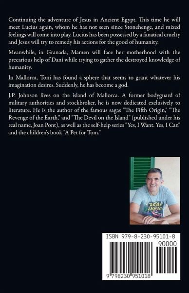 Continuing the adventure of Jesus in Ancient Egypt. This time he will meet Lucius again, whom he has not seen since Stonehenge, and mixed feelings will come into play. Lucius has been possessed by a fanatical cruelty and Jesus will try to remedy his actions for the good of humanity. Meanwhile, in Granada, Mamen will face her motherhood with the precarious help of Dani while trying to gather the destroyed knowledge of humanity. In Mallorca, Toni has found a sphere that seems to grant whatever his imagination desires. Suddenly, he has become a god. J.P. Johnson lives on the island of Mallorca. A former bodyguard of military authorities and stockbroker, he is now dedicated exclusively to literature. He is the author of the famous sagas "The Fifth Origin," "The Revenge of the Earth," and "The Devil on the Island" (published under his real name, Joan Pont), as well as the self-help series "Yes, I Want. Yes, I Can" and the children's book "A Pet for Tom."