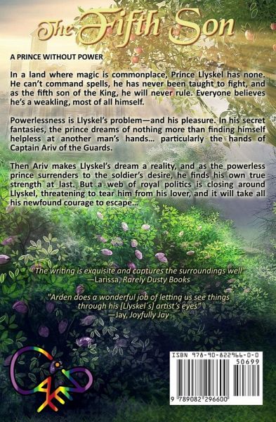 A prince without power In a land where magic is commonplace, Prince Llyskel has none. He can't command spells, he has never been taught to fight, and as the fifth son of the King, he will never rule. Everyone believes he's a weakling, most of all himself. Powerlessness is Llyskel's problem-and his pleasure. In his secret fantasies, the prince dreams of nothing more than finding himself helpless at another man's hands... particularly the hands of Captain Ariv of the Guards. Then Ariv makes Llyskel's dream a reality, and as the powerless prince surrenders to the soldier's desire, he finds his own true strength at last. But a web of royal politics is closing around Llyskel, threatening to tear him from his lover, and it will take all his newfound courage to escape... ___________________________ contains five shaded black-and-white illustrations by Yana Goya NOTE: This is the second revised/re-edited edition of The Fifth Son. It was previously published by Storm Moon Press.