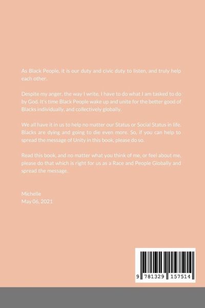 As the title say. This book is a wake up call for Black People Globally to come together and unite as a Race and People. Serious things are going to happen in the Black Community Globally and we have to come together collectively as a Race and People in a positive way to help each other.