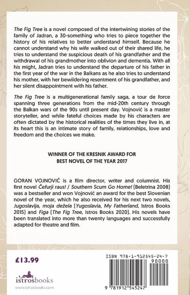 The Fig Tree is a multi-generational family saga, a tour de force spanning three generations from the mid-20th century through the Balkans wars of the 90s until present day; at its heart this is an intimate story of family, of relationships, of love and freedom and the choices we make.