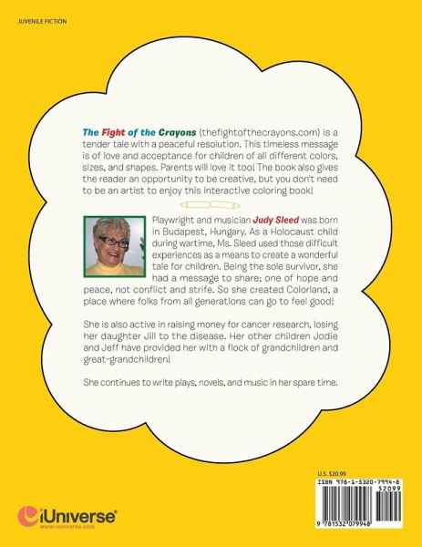 The Fight of the Crayons (thefightofthecrayons.com) is a tender tale with a peaceful resolution. This timeless message is of love and acceptance for children of all different colors, sizes, and shapes. Parents will love it too! The book also gives the reader an opportunity to be creative, but you don't need to be an artist to enjoy this interactive coloring book!