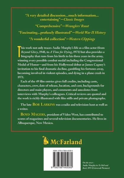 This work traces Audie Murphy's life as a film actor, including reviews of each of his films from Beyond Glory (1948) to A Time for Dying (1971). A biography of the actor runs from his birthdate (listed as 1924 so he could get into the army a year early, but really 1925) to his three years in the army winning every possible combat medal, including the Congressional Medal of Honor, and from his entry into Hollywood at James Cagney's invitation to his final dramatic decline, gambling his fortunes away, becoming involved in violent episodes, and dying in a plane crash in 1971. Each of the 49 film reviews gives full credits, including casts, characters, crew, date of release, location, and cost, backgrounds for directors and main players, and comments and anecdotes from interviews with Murphy's colleagues. Each section also describes what was happening in the actor's life at the time of the filming and gives interesting comments about the production. The sections on films also include reviews and critics' notices from tradepapers and newspapers of the time, and the work is richly illustrated with film stills and private photographs.