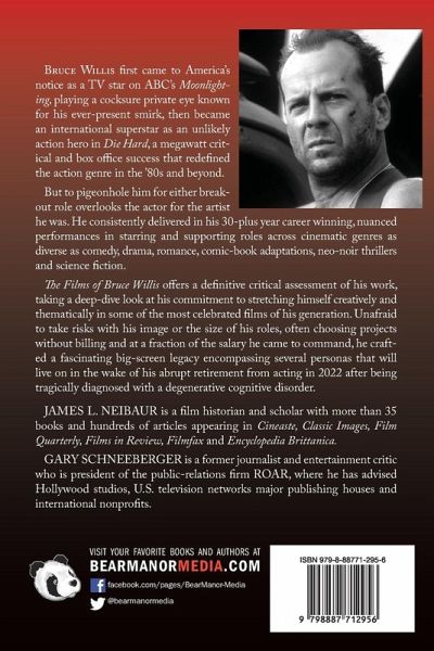 Bruce Willis first came to America's notice as a TV star on ABC's Moonlighting, playing a cocksure private eye known for his ever-present smirk, then became an international superstar as an unlikely action hero in Die Hard, a megawatt critical and box office success that redefined the action genre in the '80s and beyond. But to pigeonhole him for either breakout role overlooks the actor for the artist he was. He consistently delivered in his 30-plus year career winning, nuanced performances in starring and supporting roles across cinematic genres as diverse as comedy, drama, romance, comic-book adaptations, neo-noir thrillers and science fiction. The Films of Bruce Willis offers a definitive critical assessment of his work, taking a deep-dive look at his commitment to stretching himself creatively and thematically in some of the most celebrated films of his generation. Unafraid to take risks with his image or the size of his roles, often choosing projects without billing and at a fraction of the salary he came to command, he crafted a fascinating big-screen legacy encompassing several personas that will live on in the wake of his abrupt retirement from acting in 2022 after being tragically diagnosed with a degenerative cognitive disorder. James L. Neibaur is a film historian and scholar with more than 35 books and hundreds of articles appearing in Cineaste, Classic Images, Film Quarterly, Films in Review, Filmfax and Encyclopedia Brittanica. GARY SCHNEEBERGER is a former journalist and entertainment critic who is president of the public-relations firm ROAR, where he has advised Hollywood studios, U.S. television networks major publishing houses and international nonprofits.