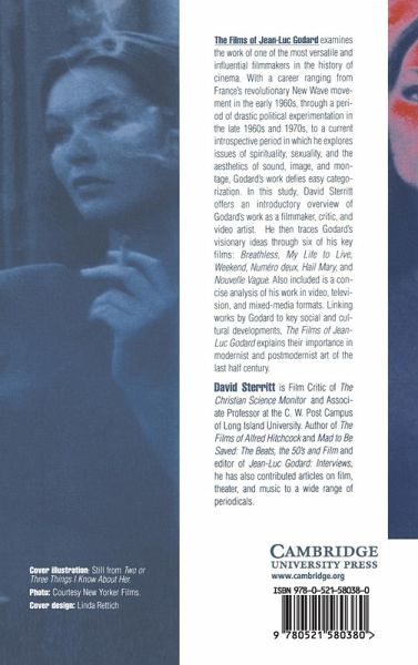The Films of Jean-Luc Godard examines the work of one of the most versatile and influential filmmakers in the history of cinema. With a career ranging from France's New Wave movement in the early 1960s to a period of political experimentation in the late 1960s and 70s, and, currently, a contemplative period in which Godard has explored issues of spirituality, sexuality, and the aesthetics of sound, image, and montage, the filmmaker's work defies easy categorization. In this study, David Sterritt offers an introductory overview of Godard's work as a filmmaker, critic, and video artist. In subsequent chapters, he traces Godard's visionary ideas through six of his key films, including Breathless, My Life to Live, Weekend, Numéro deux, Hail Mary, and Nouvelle Vague formats. Linking Godard's works to key social and cultural developments, The Films of Jean-Luc Godard explains their importance in modernist and postmodernist art of the last half century.