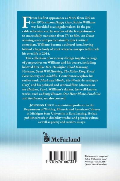From his first appearance as Mork from Ork on the 1970s sitcom Happy Days, Robin Williams was heralded as a singular talent. In the pre-cable television era, he was one of the few performers to successfully transition from TV to film. An Oscar-winning actor and preternaturally quick-witted comedian, Williams became a cultural icon, leaving behind a large and varied body of work when he unexpectedly took his own life in 2014. This collection of new essays brings together a range of perspectives on Williams and his oeuvre, including beloved hits like Mrs. Doubtfire, Good Morning, Vietnam, Good Will Hunting, The Fisher King, Dead Poets Society and Aladdin. Contributors explore his earlier work (Mork and Mindy, The World According to Garp) and his political and satirical films (Moscow on the Hudson, Toys). Williams's darker, less well-known fare, such as Being Human, One Hour Photo, Final Cut and Boulevard, is also covered. Williams's artistry has become woven into the fabric of our global media culture.