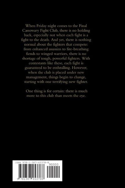 Book 1 of The Final Cassowary Fight Club Series: Welcome to The Final Cassowary Fight Club, where every Friday night spectators gather to watch contestants fight one another - to the death. But the club is not what it seems, and neither are the fighters. When the club is put under new management, however, things begin to change, starting with one terrifying new fighter.