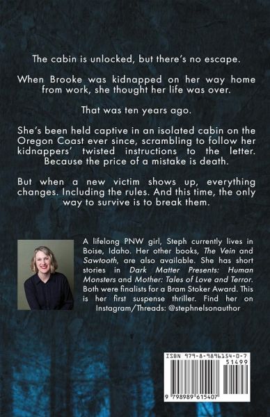 The cabin is unlocked, but there's no escape. When Brooke was kidnapped on her way home from work, she thought her life was over. That was ten years ago. She's been held captive in an isolated cabin on the Oregon coast ever since, scrambling to follow her kidnappers' twisted instructions to the letter. Because the price of a mistake is death. But when a new victim shows up, everything changes. Including the rules. And this time, the only way to survive is to break them.