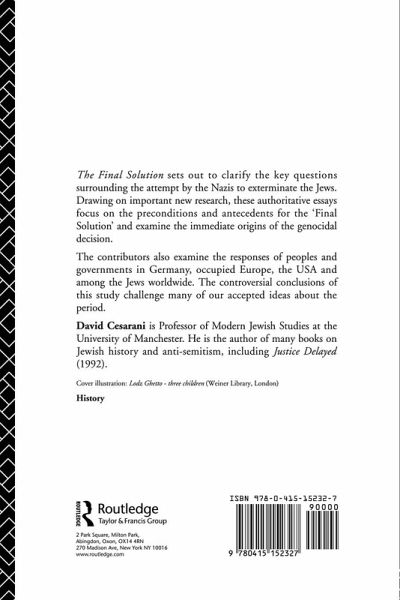 Introduction Part 1 Antecedents, preconditions and legitimation 1 Volksgemeinschaft, 'Aryanization' and the Holocaust 2 Euthanasia and the Final Solution 3 The idea of the Final Solution and the role of experts Part 2 Operation Barbarossa, the Wehrmacht and the question of timing 4 Himmler, the architect of genocide 5 The relation between Operation Barbarossa as an ideological war of extermination and the Final Solution 6 Wehrmacht, Einsatzgruppen, Soviet POWs and anti-Bolshevism in the emergence of the Final Solution 7 Operation Barbarossa and the origins of the Final Solution 8 Hitler and the euphoria of victory: the path to the Final Solution Part 3 The implementation of the Final Solution and responses 9 The response of Polish Jewry to the Final Solution 10 The Holocaust in Lithuania: some unique aspects 11 Types of Genocide? Croatians, Serbs and Jews, 1941-5 12 How far did Vichy France 'sabotage' the imperatives of Wannsee? 13 German public awareness of the Final Solution 14 Rescue through statehood: the American Zionist response to the Holocaust 15 Different worlds: British perceptions of the Final Solution during the Second World War 16 Enmity, indifference or cooperation: the Allies and Yishuv's rescue activists Part 4 Historiography 17 Documents on the Holocaust in archives of the former Soviet Union Conclusion: the significance of the Final Solution