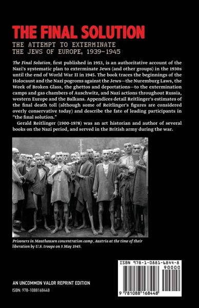 The Final Solution, first published in 1953, is an authoritative account of the Nazi's systematic plan to exterminate Jews (and other groups) in the 1930s until the end of World War II in 1945. The book traces the beginnings of the Holocaust and the Nazi pogroms against the Jews-the Nuremburg Laws, the Week of Broken Glass, the ghettos and deportations-to the extermination camps and gas chambers of Auschwitz, and Nazi actions throughout Russia, western Europe and the Balkans. Appendices detail Reitlinger's estimates of the final death toll (although some of Reitlinger's figures are considered overly conservative today) and describe the fate of leading participants in "the final solution." Gerald Reitlinger (1900-1978) was an art historian and author of several books on the Nazi period, and served in the British army during the war. Today, The Final Solution remains one of the most objective and best-documented sources on the Holocaust.