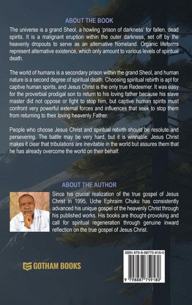 The universe is a grand Sheol, a howling 'prison of darkness' for fallen, dead spirits. It is a malignant eruption within the outer darkness, set off by the heavenly dropouts to serve as an alternative homeland. Organic lifeforms represent alternative existence, which only amount to various levels of spiritual death. The world of humans is a secondary prison within the grand Sheol, and human nature is a second degree of spiritual death. Choosing spiritual rebirth is apt for captive human spirits, and Jesus Christ is the only true Redeemer. It was easy for the proverbial prodigal son to return to his loving father because his slave master did not oppose or fight to stop him, but captive human spirits must confront very powerful external forces and influences that seek to stop them from returning to their loving heavenly Father. People who choose Jesus Christ and spiritual rebirth should be resolute and persevering. The battle may be very hard, but it is winnable. Jesus Christ makes it clear that tribulations are inevitable in the world but assures them that he has already overcome the world on their behalf.